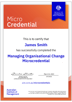 Upon successful completion of the Microcredential in Managing Organisational Change, share your Microcredential on LinkedIn and other digital platforms to display your growing professional value to current and future employers